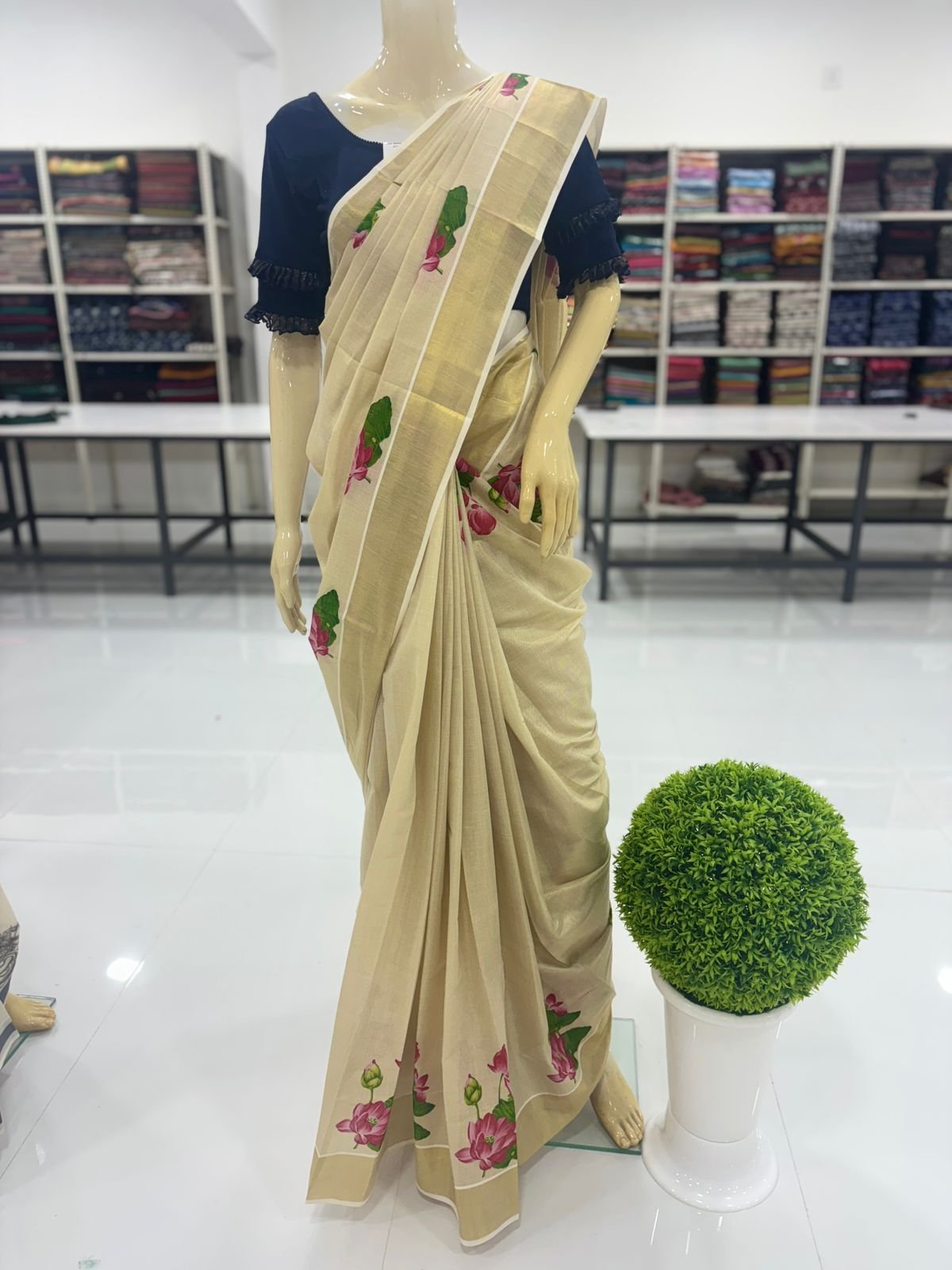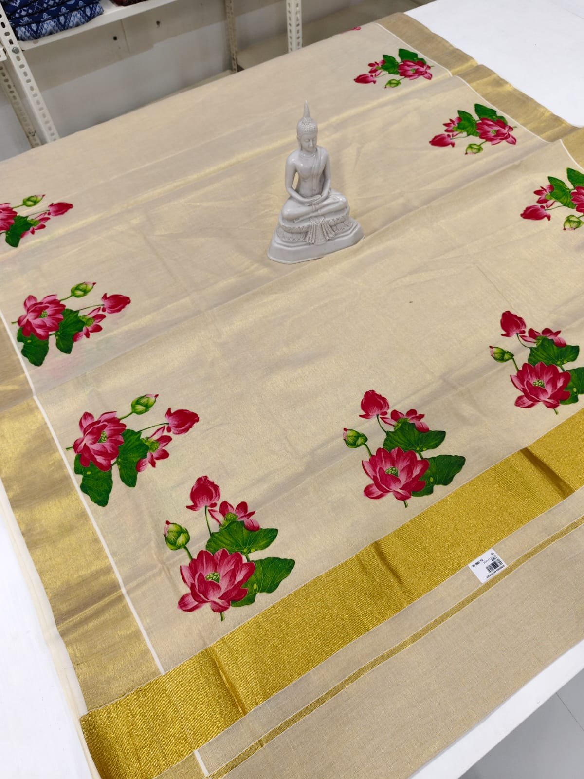 THIS BEAUTIFUL LOTUS PRINT SAREE IS AVAILABLE IN TWO BEAUTIFUL COLOURS. YOU CAN PLACE BULK ORDERS THROUGH CONTACTING OUR STORE. PLEASE WHATTSAPP 8593001650.